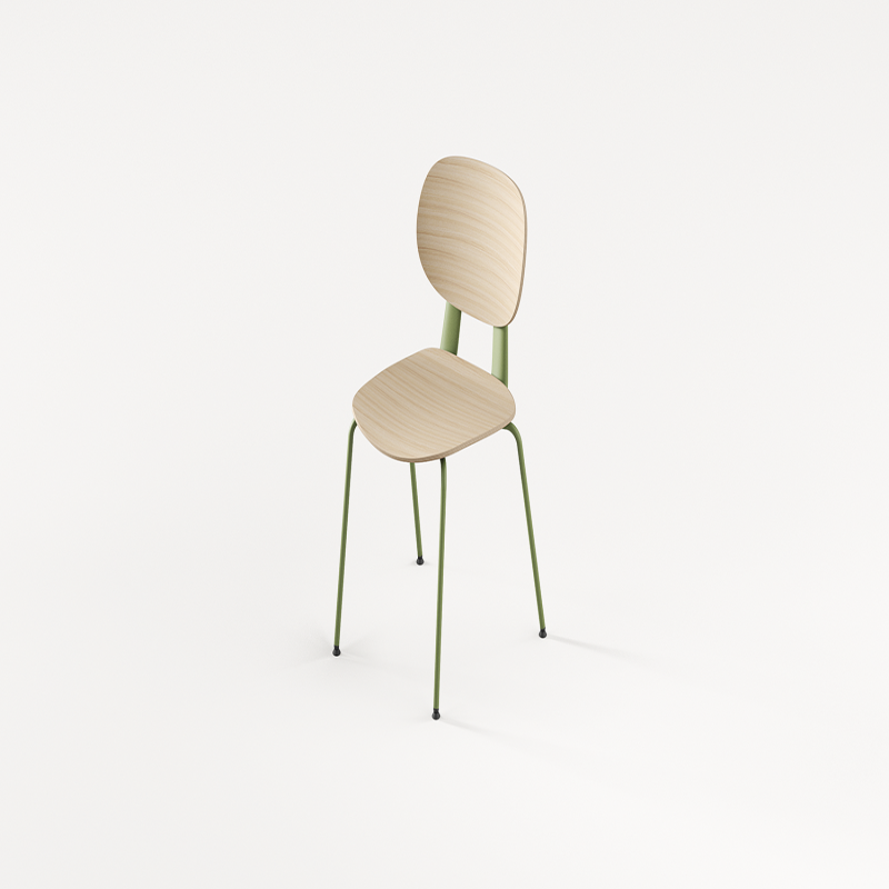 2.坐板:坐板规格为425*435mm(±5mm),坐板选用多层天然木皮横竖叠加,经高温热压一次成型;成型后坐板呈三维曲面,坐板后端仰角不低于R50圆弧支撑腰臀,坐板前端俯角不低于R145圆弧撑托大腿部分,坐板两端接触臀部仰角不低于R400曲面,坐感舒适久坐不累;饰面部分选用优质木皮饰面,纹理美观、打磨圆滑;表面采用环保油漆涂装,硬度高、耐磨性强、漆膜饱满,经三底两面喷涂,漆膜涂层无剥落、露底、针孔、花斑、划痕等。甲醛释放量符合国标GB 18584-2024《家具中有害物质限量》检测标准。