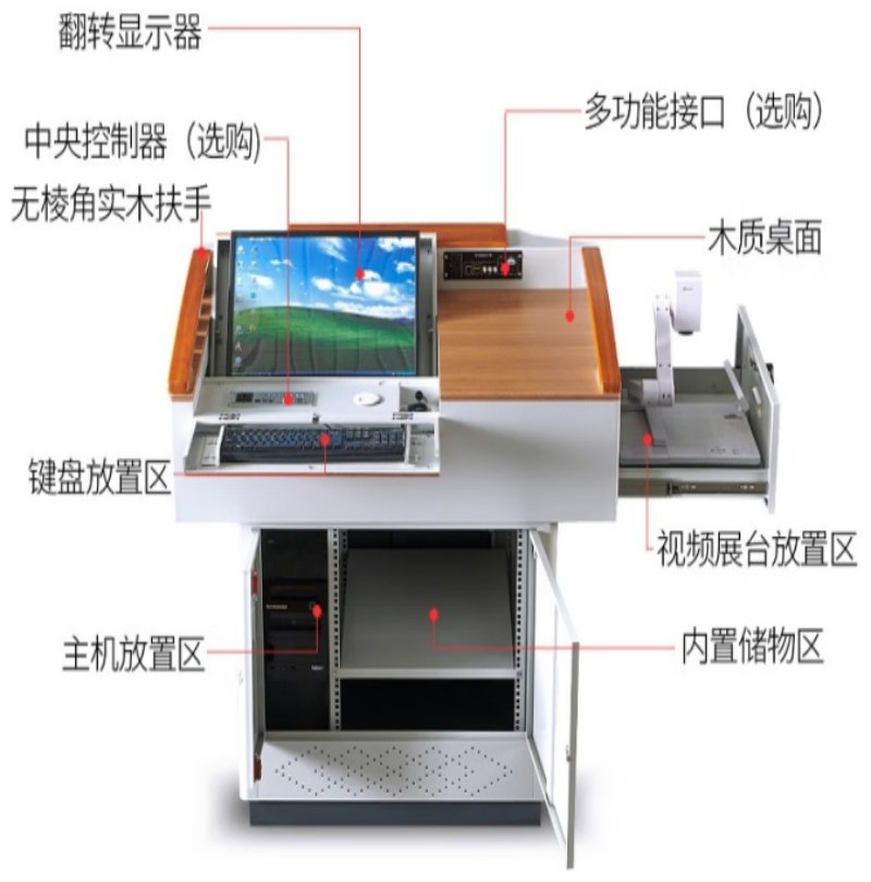 5)可供多种中控面板安装;杂物抽屉可放置实物展台、粉笔、墨水等;