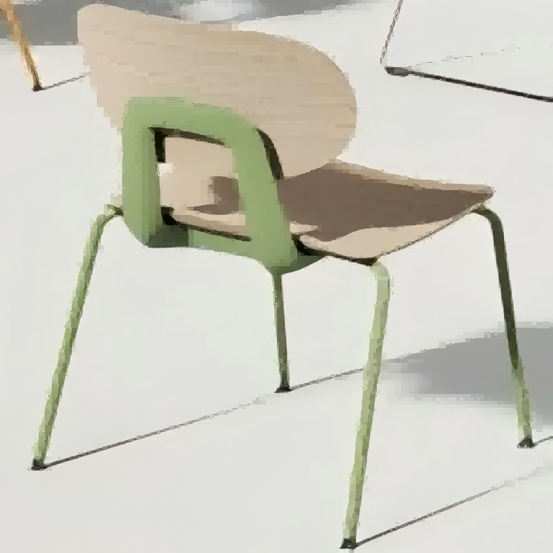 2.坐板:坐板规格为425*435mm(±5mm),坐板选用多层天然木皮横竖叠加,经高温热压一次成型;成型后坐板呈三维曲面,坐板后端仰角不低于R50圆弧支撑腰臀,坐板前端俯角不低于R145圆弧撑托大腿部分,坐板两端接触臀部仰角不低于R400曲面,坐感舒适久坐不累;饰面部分选用优质木皮饰面,纹理美观、打磨圆滑;表面采用环保油漆涂装,硬度高、耐磨性强、漆膜饱满,经三底两面喷涂,漆膜涂层无剥落、露底、针孔、花斑、划痕等。甲醛释放量符合国标GB 18584-2024《家具中有害物质限量》检测标准。